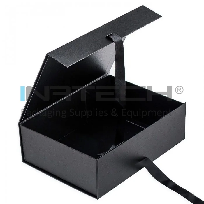Cutie Pentru Cadouri Cu Inchidere Magnetica Lungime 350 mm, Latime 250 mm, Inaltime 100 mm, Culoare Negru, Tip Carton Mucava, Sistem Inchidere Magnet