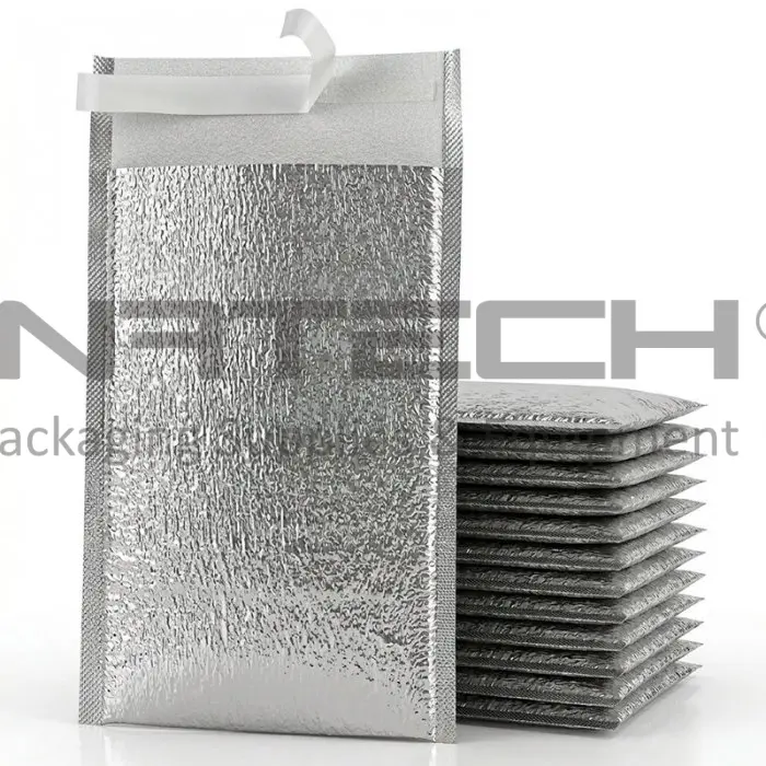 Plic Curierat Termoizolant Cu Clapeta Adeziva Dimensiuni 240x350 mm, Material PET/PEE, Clapeta 50 mm, Culoare Argintiu