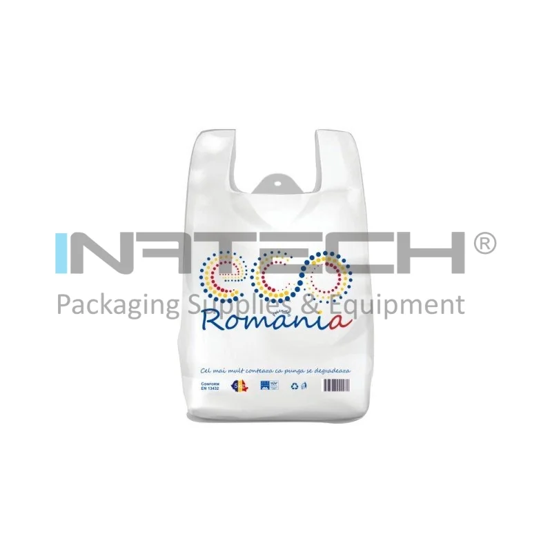 Sacose Biodegradabile compostabile, pungi in conformitate cu Directiva EN 13432. Punga biodegradabila expira doar in momentul cand aceasta intra in contact cu un mediu organic. Pungile biodegradabile compostabile sunt fertilizante pentru sol, deoarece sunt produse din amidon din cartofi si folosesc tehnologia BIOCARTENE si certificate in Bruxelles cu OK COMPOST si VINCOTTE conform Directivei EU 13432.