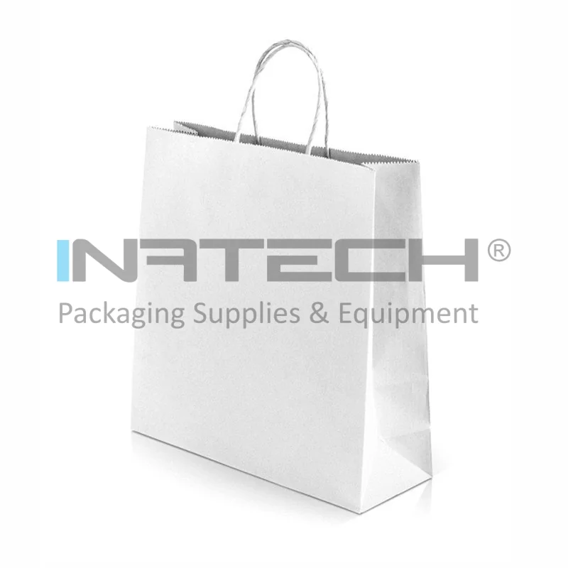 Pungi Hartie Cu Maner Rasucit, Alb/Natur