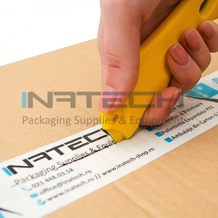 Cutter pentru taierea foliei stretch si a benzii adezive are o structura care ofera o aderenta imbunatatita. Designul special al acestui cutter garanteaza ca taierea este simpla, sigura si previne deteriorarea produselor.
