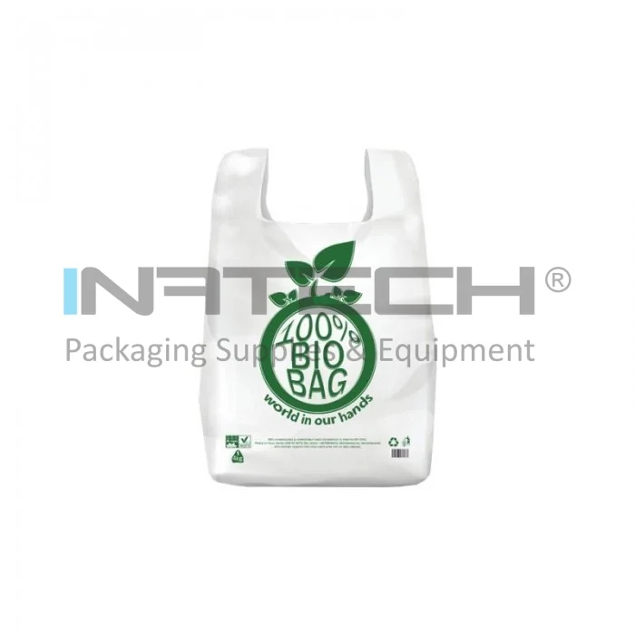 Биоразлагаемые пакеты-майки, размер 2 x 60 мм, размеры 240 x 420 мм, толщина 15 мкм, прочность 3 кг, количество в упаковке 500 шт.