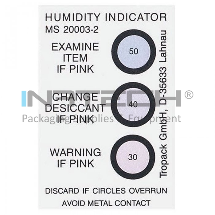 Indicatorul de umiditate este plasat in interiorul unei ferestre de plastic. Acesta poate fi fixat pe ambalaj cu scopul de a permite observarea valorii umiditatii relative din interiorul ambalajului, fara a deschide ambalajul.