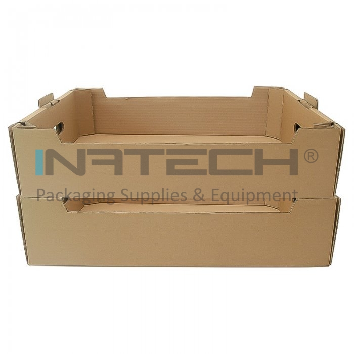 Lada Pentru Fructe si Legume este formata din carton ondulat CO5 de culoare natur. Aceste tipuri de lazi sunt destinate transportului fructelor si legumelor, deoarece sunt rezistente si reprezinta o solutie ideala de ambalare. In acelasi timp, lazile sunt realizate din materiale prietenoase cu mediul si sunt 100% reciclabile.