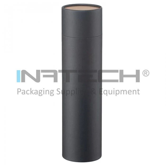 Картонные трубы с крышкой для упаковки и хранения длиной 330 мм, внутренним диаметром 87 мм, толщиной 1,5 мм, черного цвета