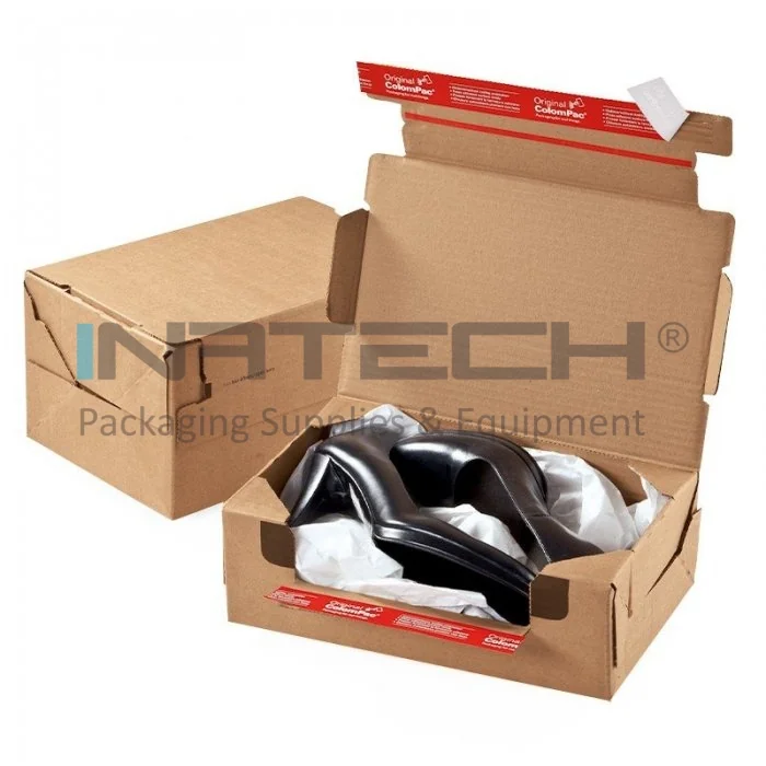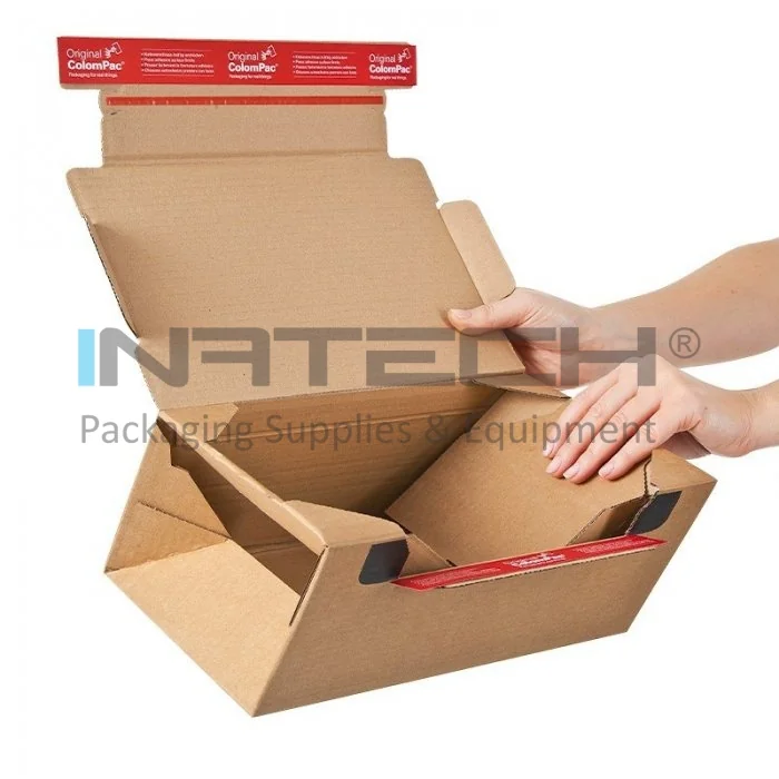 Автоформирующиеся и автозапечатывающиеся коробки ColomPac ® с возможностью возврата, длина 336 мм, ширина 242 мм, высота 140 мм, натуральный цвет, система закрытия 2 x двухсторонний скотч.
