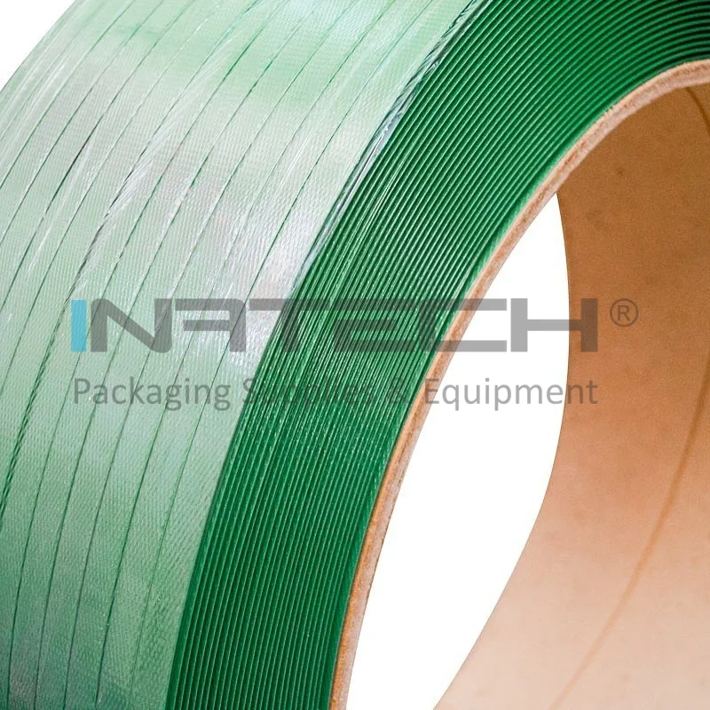 Banda PET Verde embosata este o banda din poliester cu o mare rezistenta si cu o alungire redusa si reprezinta o alternativa la aplicatiile care utilizeaza banda metalica. Are proprietati asemanatoare cu banda metalica.