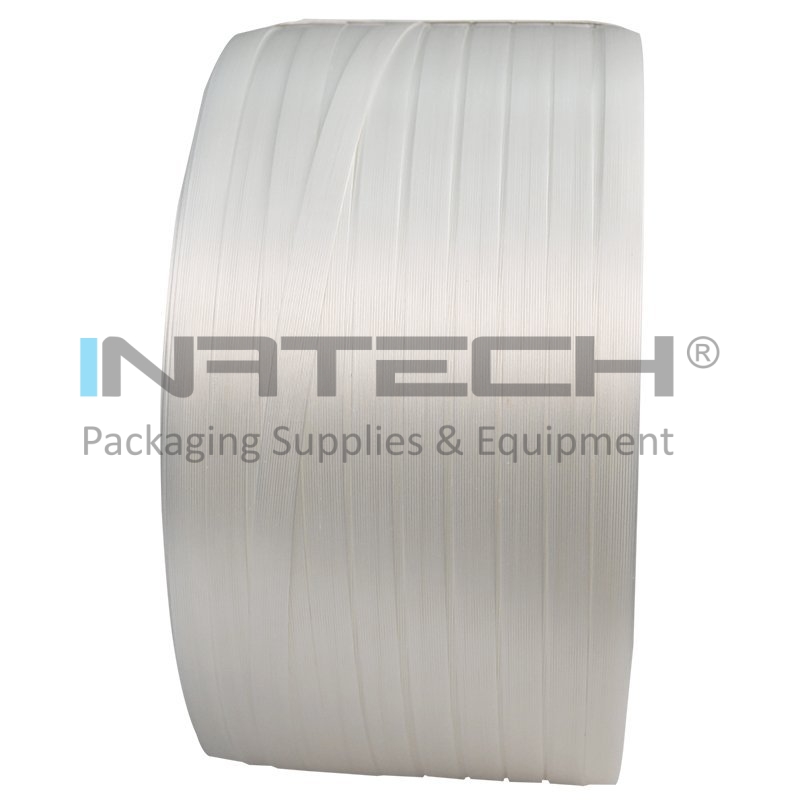 Полоса PES Netesuta Compozit, белая, 16 мм х 850 м, 450 кг, труба 200 мм длина 850 м, ширина 16 мм, прочность 450 кг, цвет белый, диаметр трубы 200 мм.