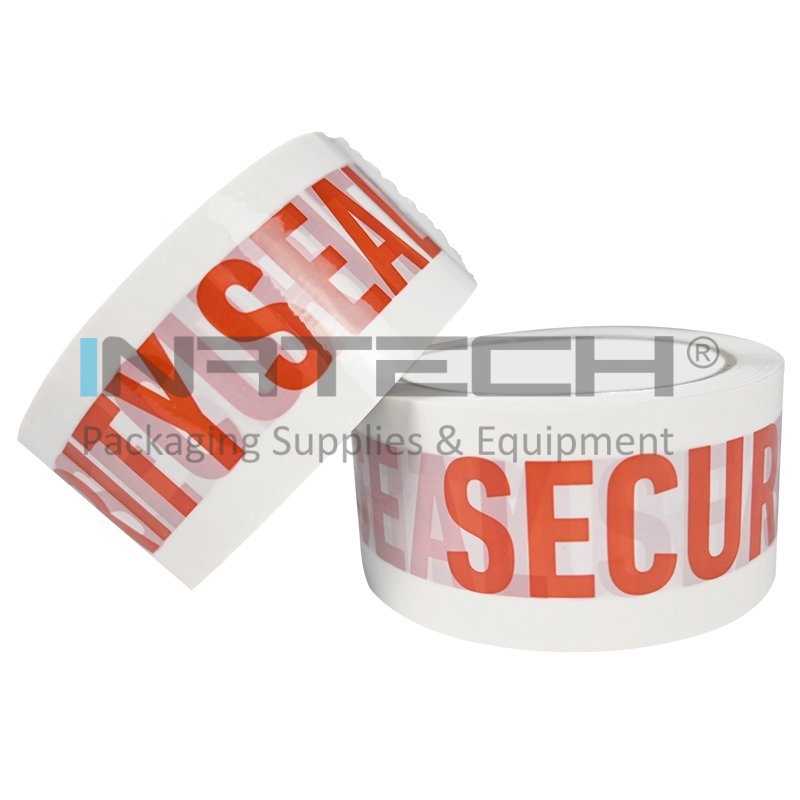 Персонализированная клейкая лента SECURITY SEAL, 48 мм х 60 м, Длина 60 м, Ширина 48 мм, Цвет Красный / Белый, Бесшумная Да