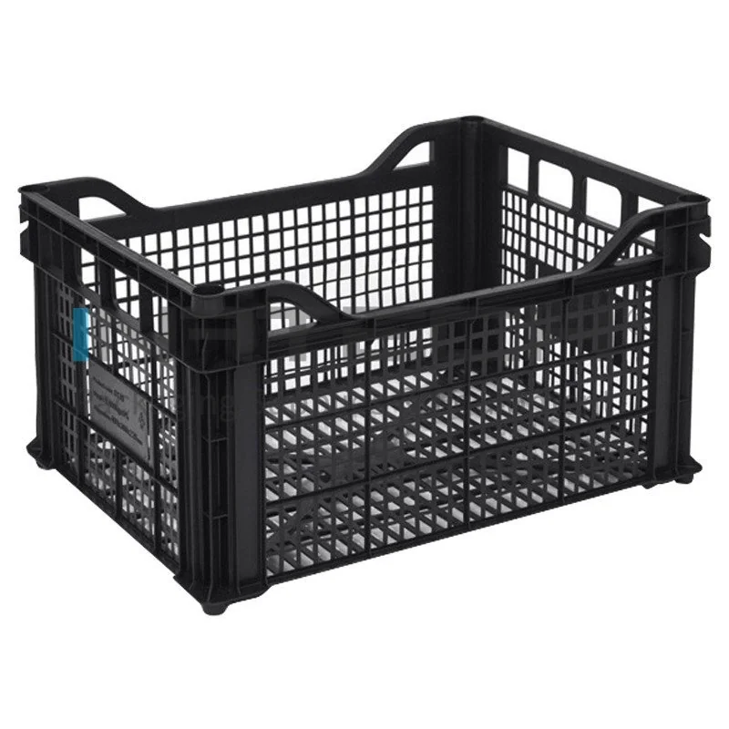 Пластиковые коробки для фруктов и овощей, внутренние размеры 380 x 280 x 210 мм, внешние размеры 400 x 300 x 220 мм, объем 20 литров, материал - переработанный полипропилен, применение - для фруктов / овощей, вес 400 гр, цвет черный.