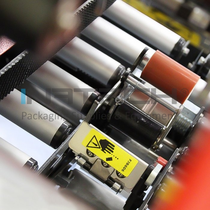 Masina poate fi utilizata de operatori nespecializati, deoarece necesita operatii de reglare foarte simple. Sigilarea cutiei are loc prin intermediul a doua curele de transmisie prezente in partea inferioara (actionate de doua motoare), asigurand astfel o uniformitate maxima de alunecare.