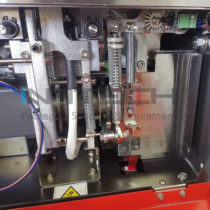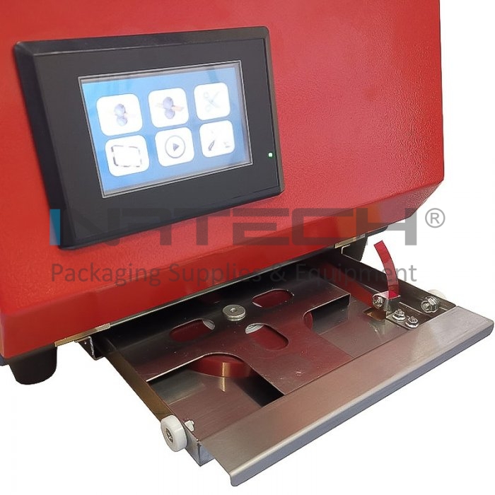 Устройство для связывания лентой, которое обеспечивает скорость упаковки 25 циклов/мин и использует ленты шириной 12 мм. Машина для связывания лентой может работать в ручном или автоматическом режиме с датчиком, а ее параметры управляются с помощью цветной сенсорной панели, расположенной на передней стороне машины.