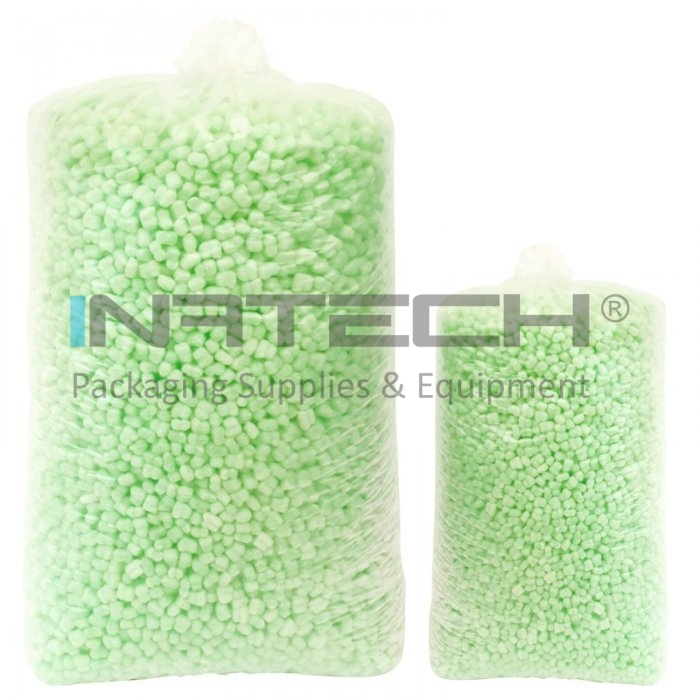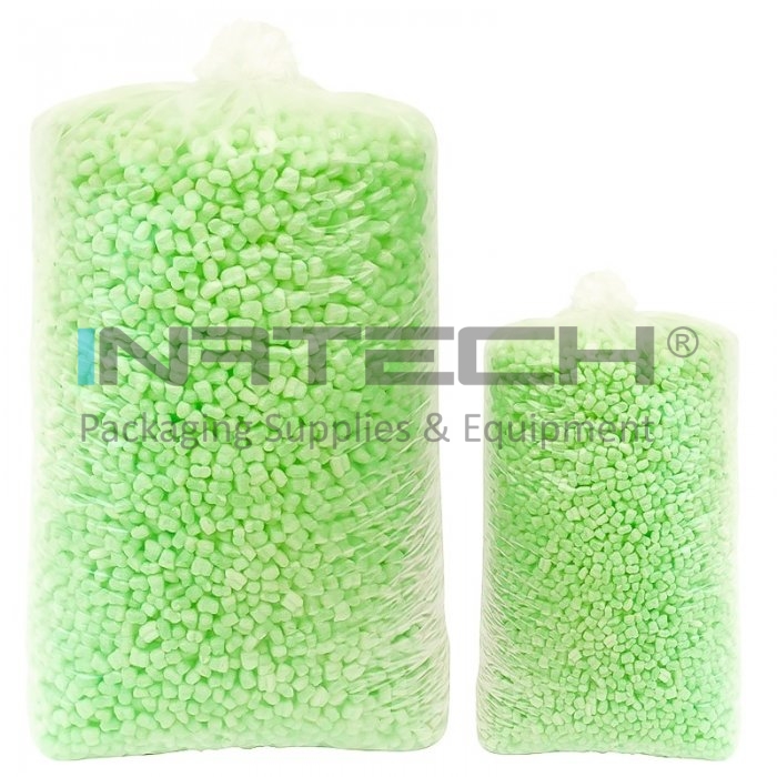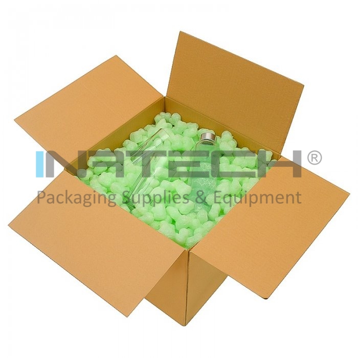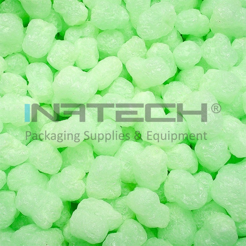 Fulgii Biodegradabili Verzi protejeaza eficient produsele, fiind utilizati pentru umplerea golurilor din cutie pe perioada transportului. Produsul este biodegradabil, fabricat din amidon, apa si PVA si este 100% solubil in apa.