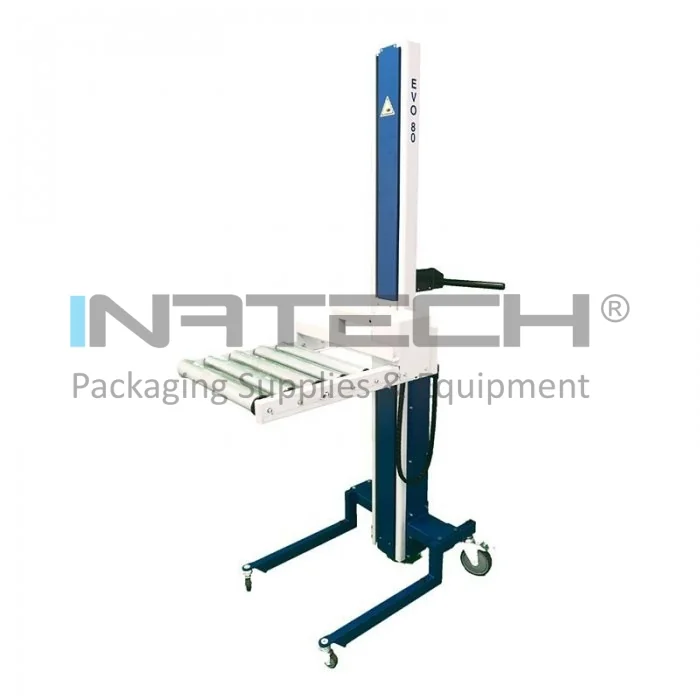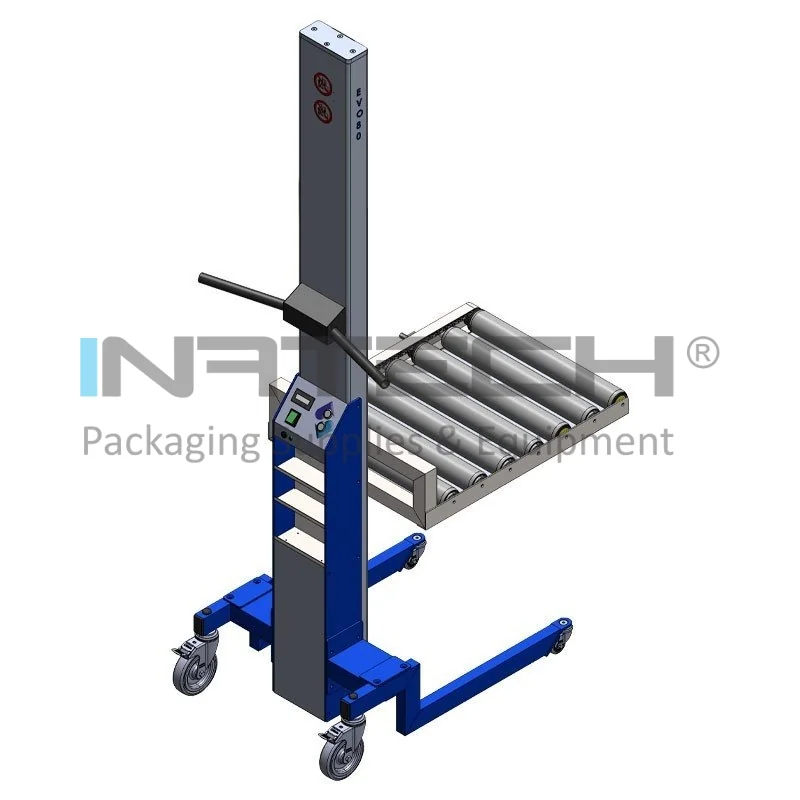Мобильный лифт с конвейерной подставкой размером 640 x 530 x 60 мм. Размер подставки 640 x 530 x 60 мм, высота подъема 1500 мм, максимальный вес 80 кг, конвейерная подставка.