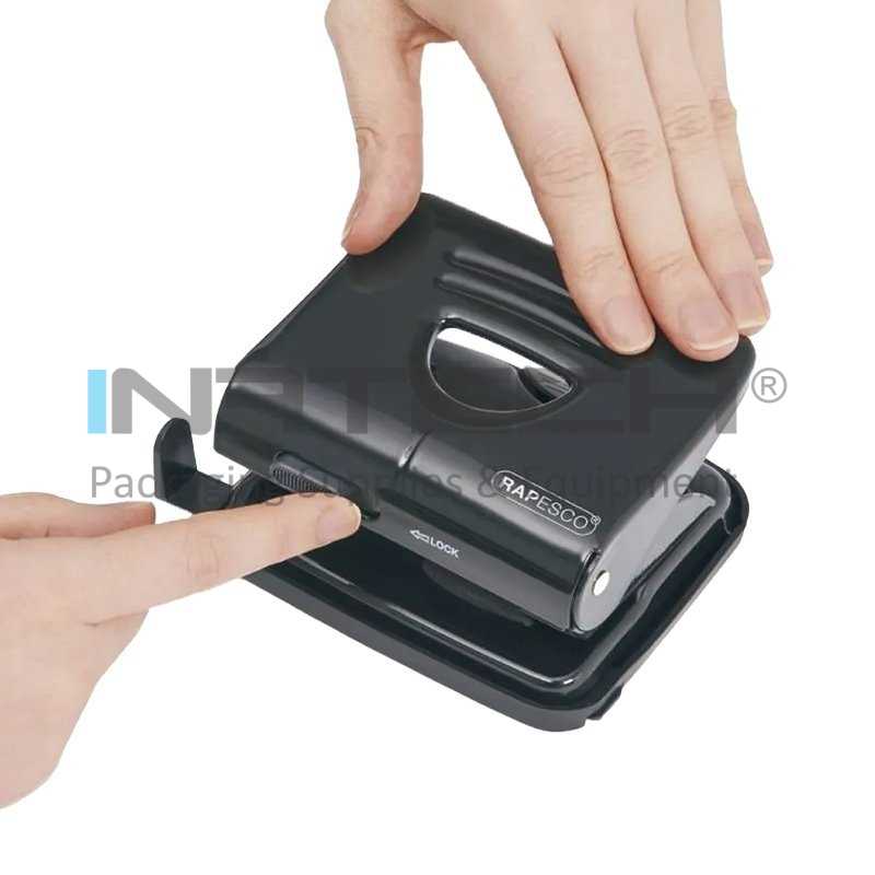 ● Capacitate de perforare de pana la 25 de coli (80 gsm) cu 2 perforatii ● Ghilotine intarite pentru perforare precisa si fara efort ● Baza metalica stabila pentru utilizare sigura ● Tavita din cauciuc pentru confetti, usor de golit ● Rigla de ghidaj ajustabila pentru aliniere corecta si perforare uniforma ● Maner cu sistem de blocare pentru depozitare compacta si sigura ● Fereastra pentru personalizare – utila pentru identificarea rapidaAvantaje Perforator metalic Rapesco, 25 coli, negru