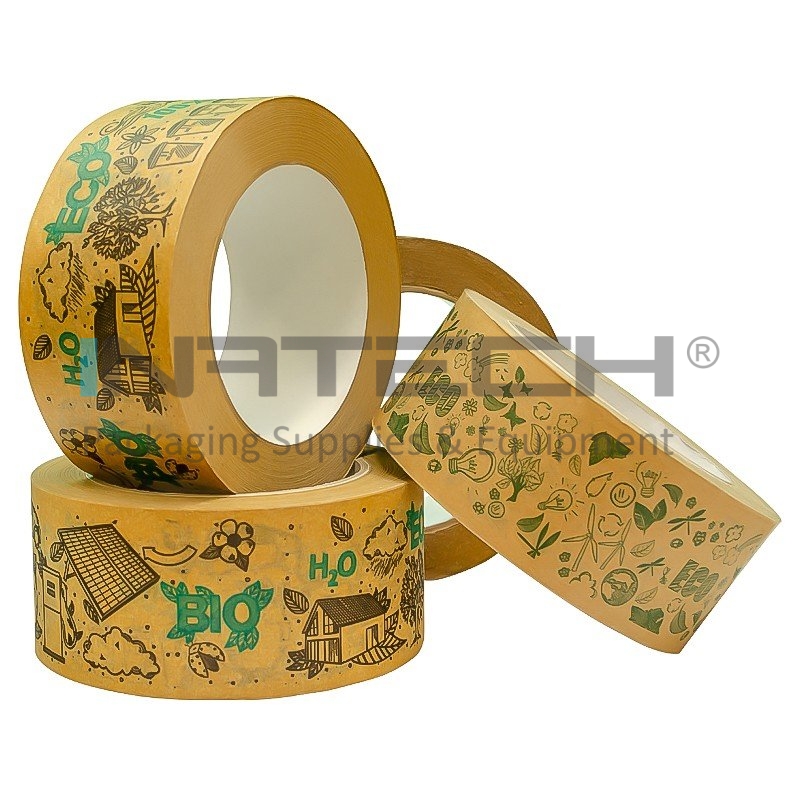 Banda Din Hartie Personalizata este o solutie ecologica pentru lipirea necesara de care aveti nevoie. Utilizand banda adeziva personalizata, ambalajele sunt inchise corespunzator, sigilate si personalizate, banda adeziva imprimata fiind un mijloc modern si eficient de reclama. Este fabricat din hartie kraft durabila și 100% reciclabila. Nu este necesar sa fie umezita în timpul aplicarii, este rezistenta chiar si in utilizarea ei pentru ambalaje cu greutate medie. Dupa sigilarea expedierii, banda se poate rupe usor cu mana.