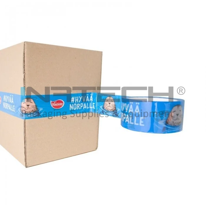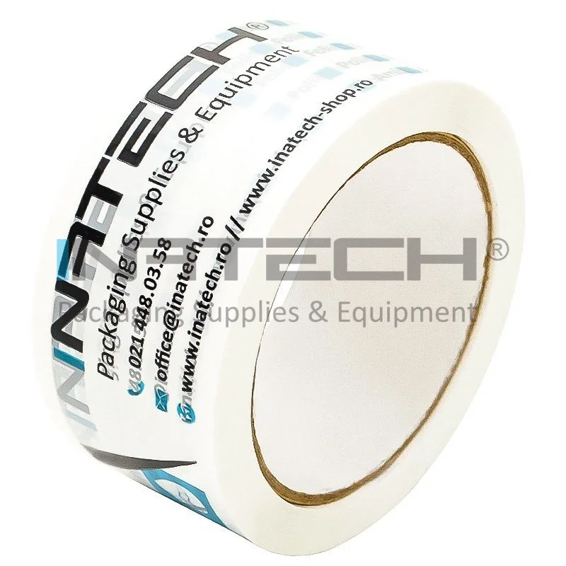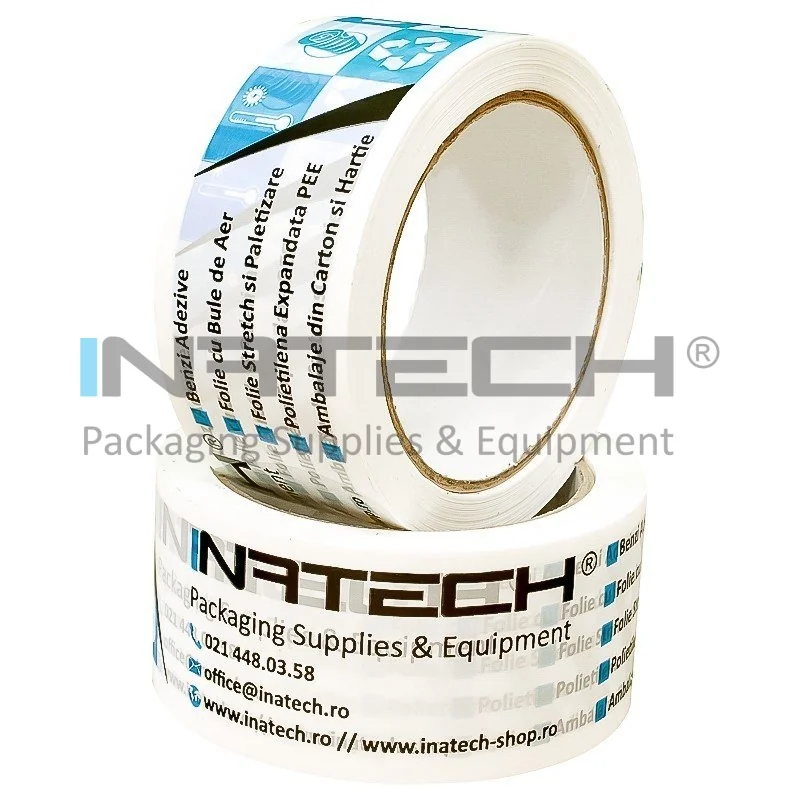 Utilizand banda adeziva personalizata, ambalajele sunt inchise corespunzator, sigilate si personalizate, banda adeziva imprimata fiind de asemenea un mijloc modern si eficient de reclama. Utilizata pentru ambalare pe suport din BOPP (polipropilena biaxial orientata) cu adeziv acrilic. Aceasta banda adeziva personalizata nu necesita masuri suplimentare de siguranta ca in cazul benzilor adezive cu adeziv solvent si este rezistenta la imbatranire. Poate fi stocata si utilizata perioade lungi de timp fara a-si pierde proprietatile.