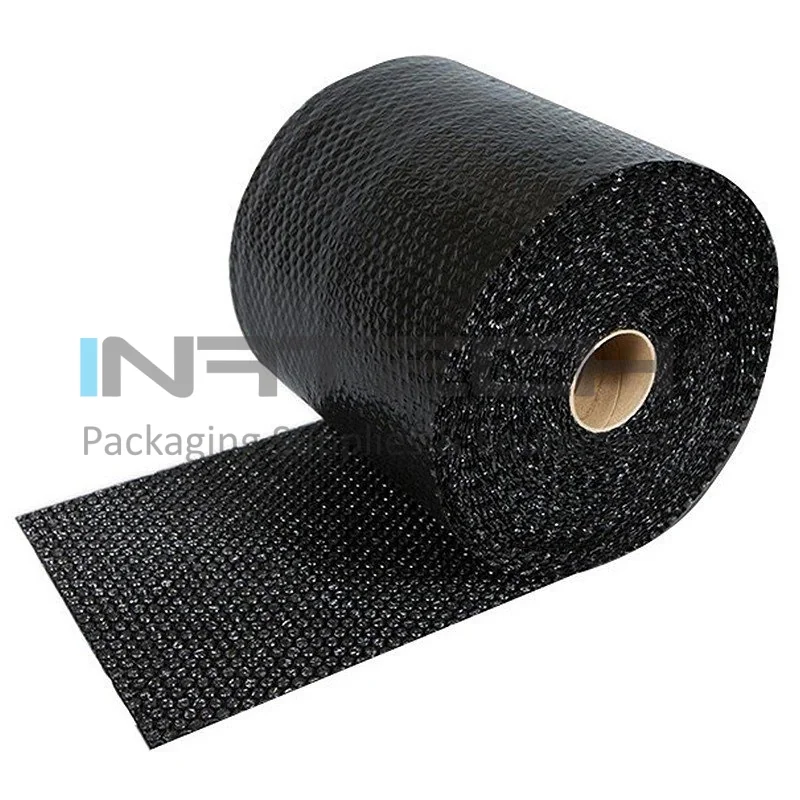 Folie Bule Mici Neagra pentru protectia produselor fragile cu forme neregulate. Folia cu bule de aer neagra este un material de ambalare usor si flexibil, produs din folie de polietilena de joasa densitate, ideala pentru protejarea produselor fragile cu forme neregulate. Acest tip de ambalaje protejeaza foarte bine suprafata produsului si ofera o protectie anti-soc si anti-vibratii. Folia cu bule de aer neagra poate fi folosita pentru a nu se vedea produsul ambalat si pentru a umple spatiile goale din interiorul cutiilor.