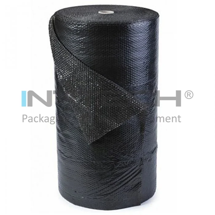 Folie Bule Mici Neagra pentru protectia produselor fragile cu forme neregulate. Folia cu bule de aer neagra este un material de ambalare usor si flexibil, produs din folie de polietilena de joasa densitate, ideala pentru protejarea produselor fragile cu forme neregulate. Acest tip de ambalaje protejeaza foarte bine suprafata produsului si ofera o protectie anti-soc si anti-vibratii. Folia cu bule de aer neagra poate fi folosita pentru a nu se vedea produsul ambalat si pentru a umple spatiile goale din interiorul cutiilor.