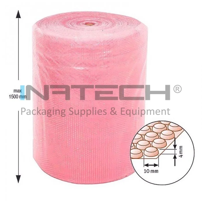 Folie Bule Mici Roz pentru protectia produselor fragile cu forme neregulate. Folia cu bule de aer mici este un material de ambalare usor si flexibil, produs din folie de polietilena de joasa densitate, ideala pentru protejarea produselor fragile si cu forme neregulate. Acest tip de ambalaje protejeaza foarte bine suprafata produsului si ofera o protectie anti-soc si anti-vibratii. Folia cu bule de aer mici poate fi folosita si pentru a umple spatiile goale din interiorul ambalajelor.