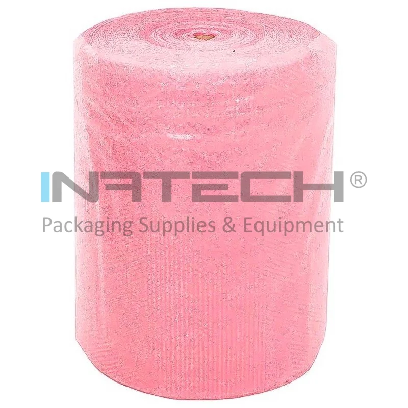 Пузырчатая пленка розового цвета, ширина 400 мм, длина 100 м, 2 слоя, толщина 60 мкм, цвет розовый.