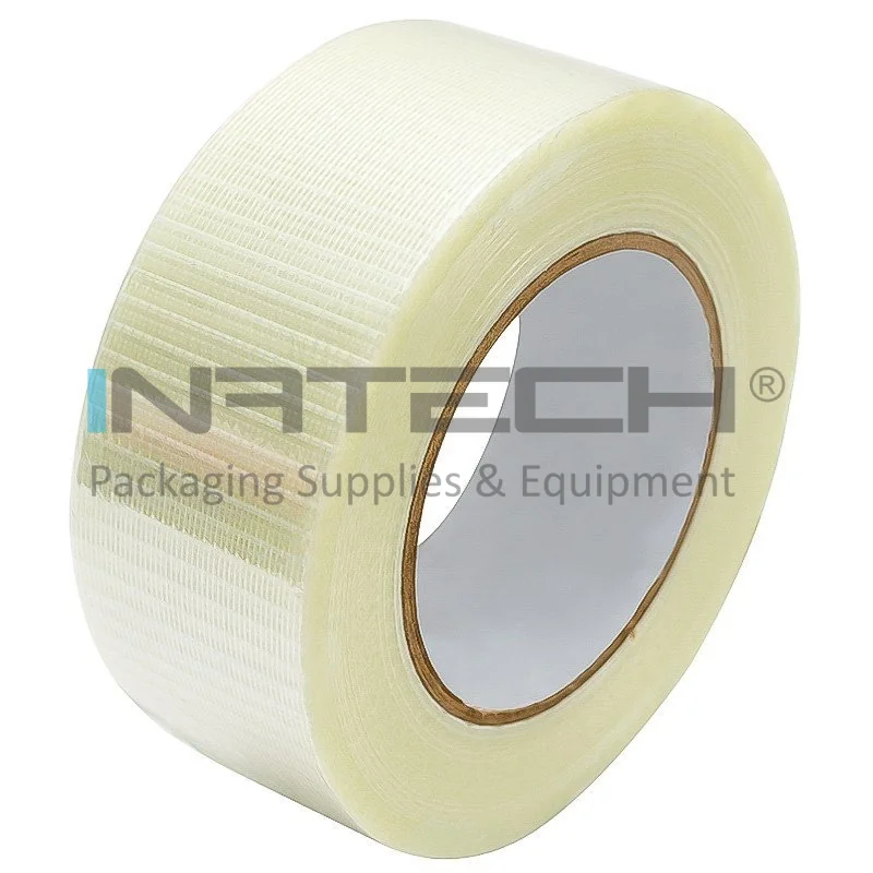 Banda Ranforsata in cruce este destinata impachetarii produselor grele. Compusa din folie de polipropilena laminata cu fibra de sticla, aplicatiile benzii adezive ranforsate includ: impachetarea si legarea produselor grele, asigurarea paletilor si inchiderea si consolidarea cutiilor de transport. Banda adeziva prezinta o rezistenta buna la tensionare si detine o capacitate redusa de alungire.