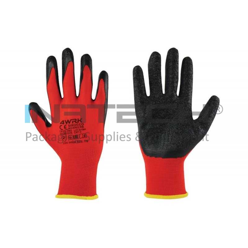 Рабочие перчатки SIROCCO размер 10/XL, Материал - пористый полиэстер-латекс, Вес 18 гр/перчатка гр, Цвет ткани - красный трикотаж, покрытие - черное.