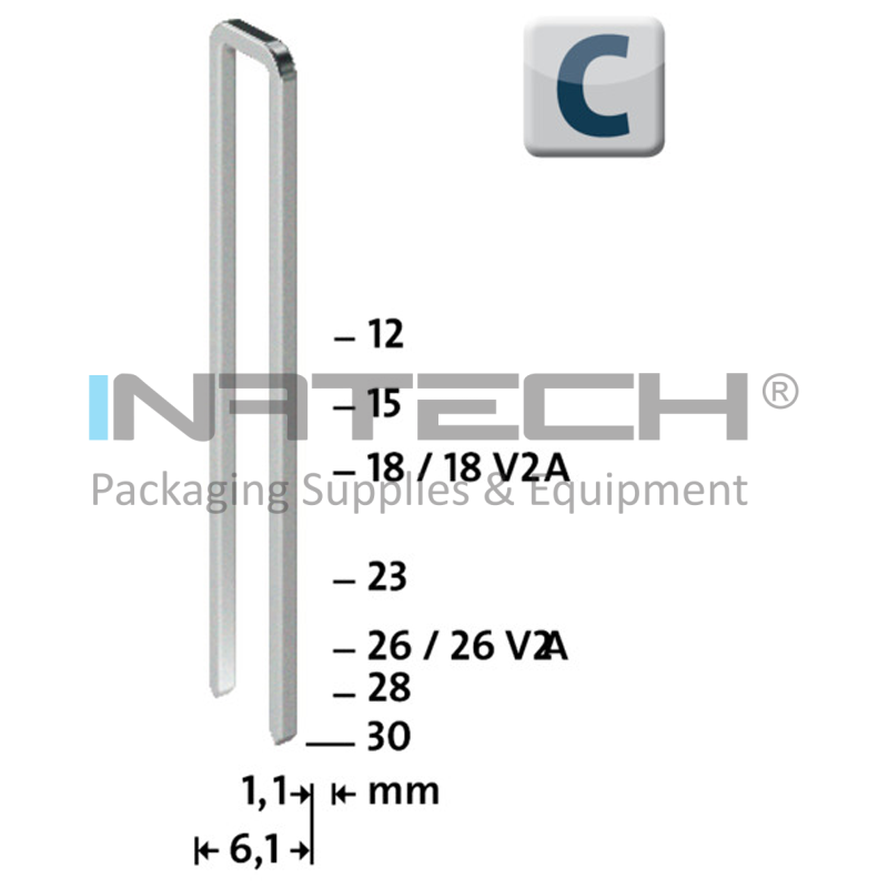 Оцинкованные скобы узкие для крепления панелей и профилированных деревянных изделий. Оцинкованные скобы типа C совместимы с продуктом Электрический степлер J-165 Panel.