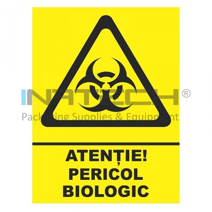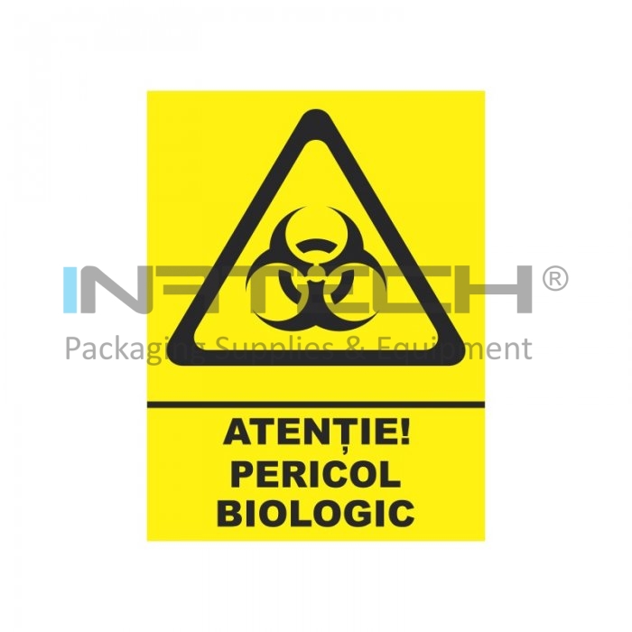 Желтого цвета, с пиктограммой и текстом "БИОЛОГИЧЕСКАЯ ОПАСНОСТЬ"