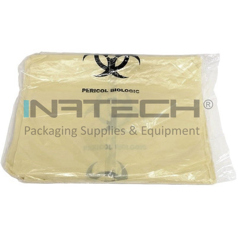Желтые мешки с надписью "БИОЛОГИЧЕСКАЯ ОПАСНОСТЬ" предназначены для сбора медицинских отходов или инфекционных отходов. Кроме надписи, желтые полиэтиленовые мешки также содержат пиктограмму, указывающую на наличие биологической опасности. Мешки с надписью "БИОЛОГИЧЕСКАЯ ОПАСНОСТЬ" изготовлены из полиэтилена, устойчивого к механическим ударам и давлению.