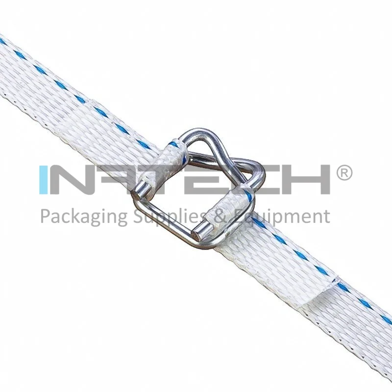 Bucle Metalice Banda PES folosite pentru legarea benzii albe pentru paletizare. Buclele pentru tensionarea benzii din poliester sunt elemente de legare si fixare. Acestea pot fi atat galvanizate, cat si fosfatate si pot fi utilizate in functie de aplicatia necesara.