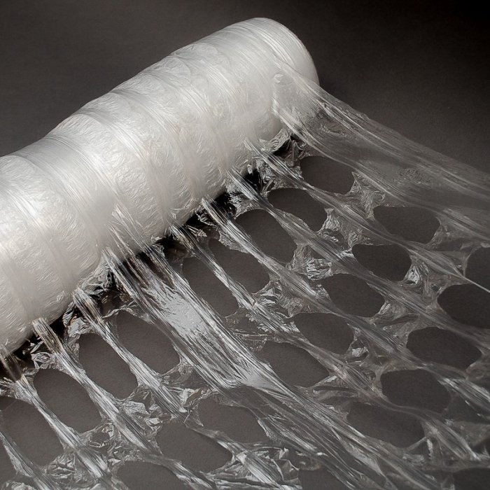 Проницаемая антиконденсатная стрейч-пленка, шириной 420 мм и весом 1,65 кг, идеально подходит для паллетирования продуктов, требующих вентиляции и стабильности, поддерживая напряжение даже в экстремальных условиях.