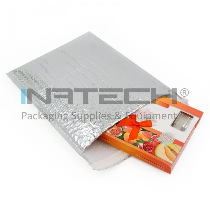Plicul cu bule cu clapeta adeziva ofera o solutie de protectie termica pentru produse sensibile la caldura si pentru produse perisabile. Fiind alcatuite din trei straturi de material (pet metalizat, folie cu bule si polietilena expandata), plicurile protejeaza produsele impotriva factorilor externi, iar clapeta adeziva face ca utilizarea lor sa fie rapida.